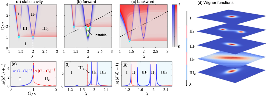 1: 全光操控的非互易超辐射相变和多临界现象(相图中三角形表示三相点,圆圈表示多临界点)