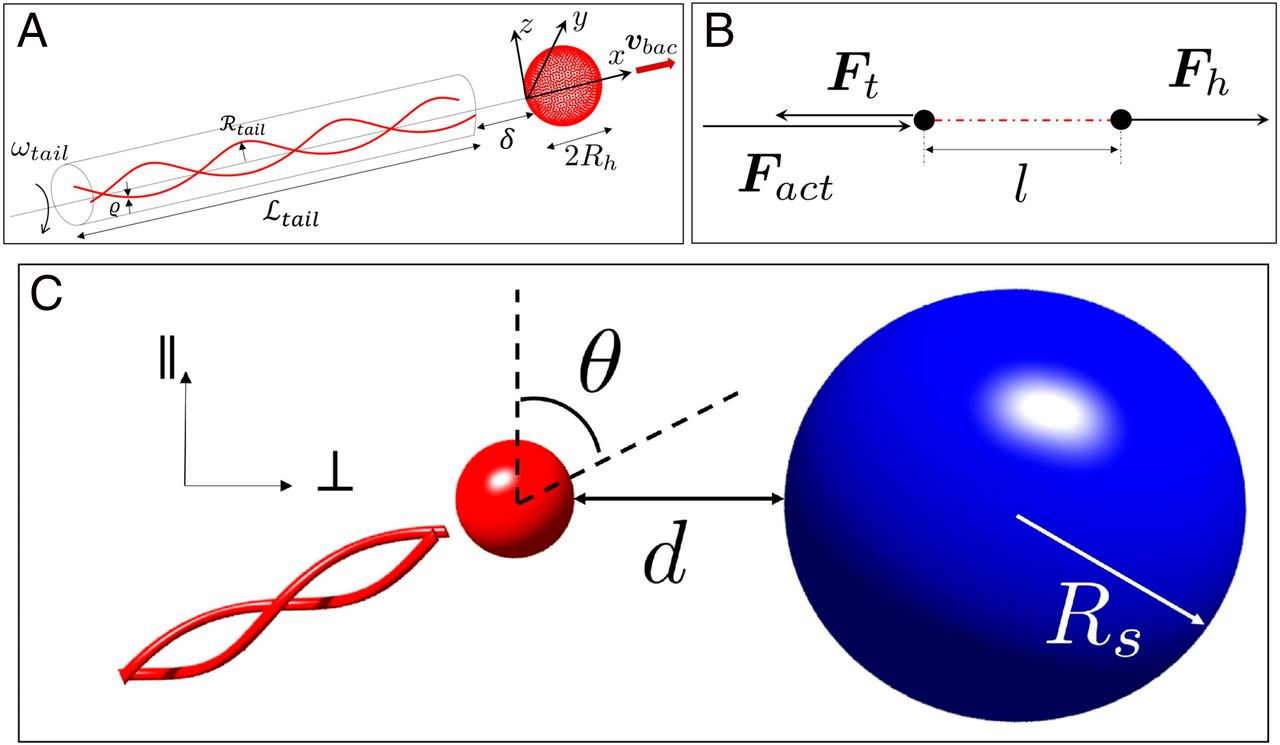 图1:(A) 精确细菌模型、 (B) 简化的细菌模型、(C) 细菌模型验证系统:细菌与微米小球