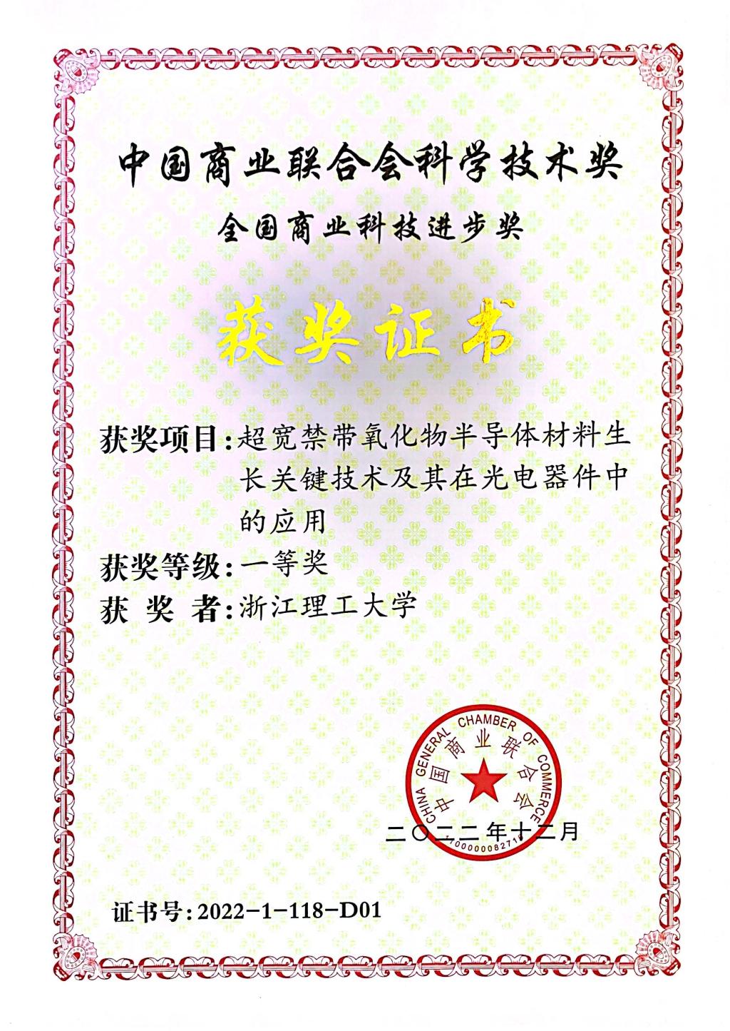 物理学系“浙理工氧化镓团队”喜获中国商业联合会科学技术奖一等奖