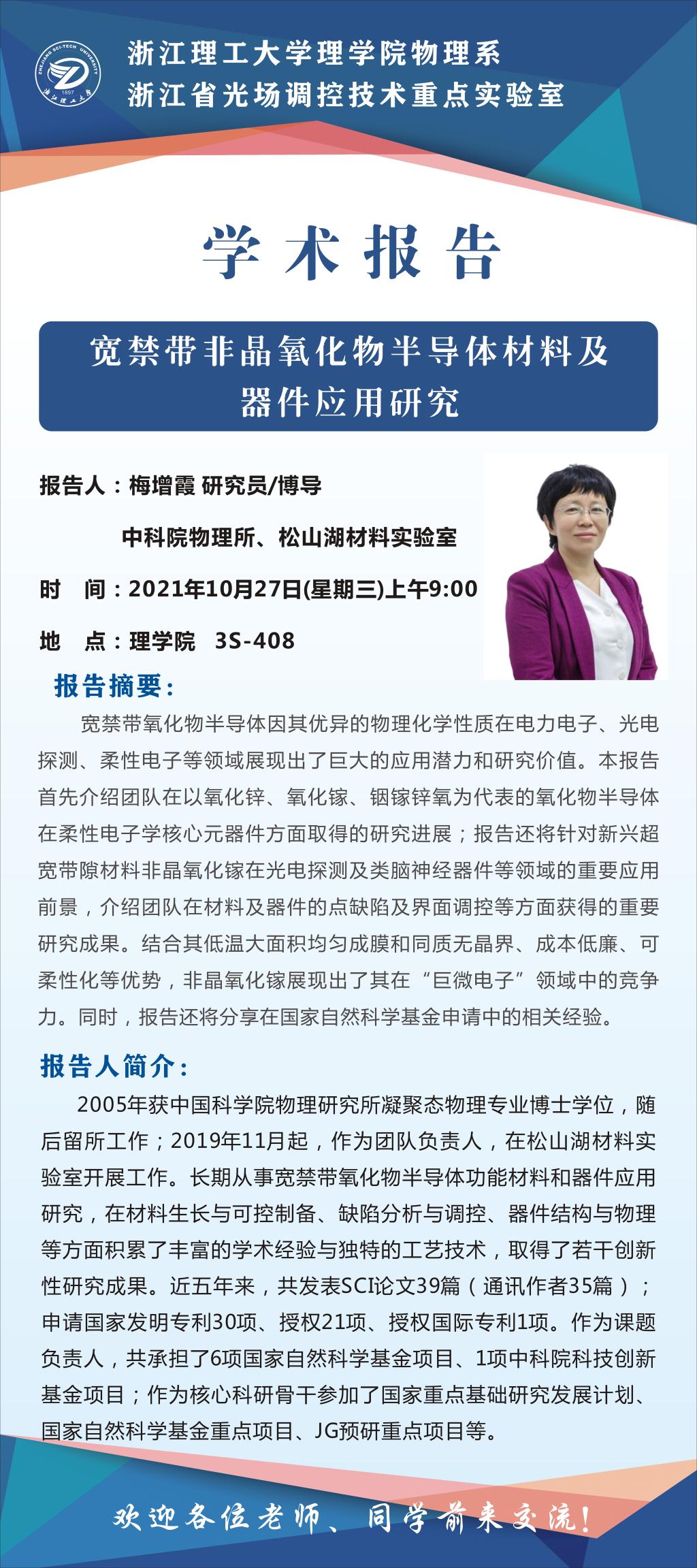学术报告:宽禁带非晶氧化物半导体材料及器件应用研究