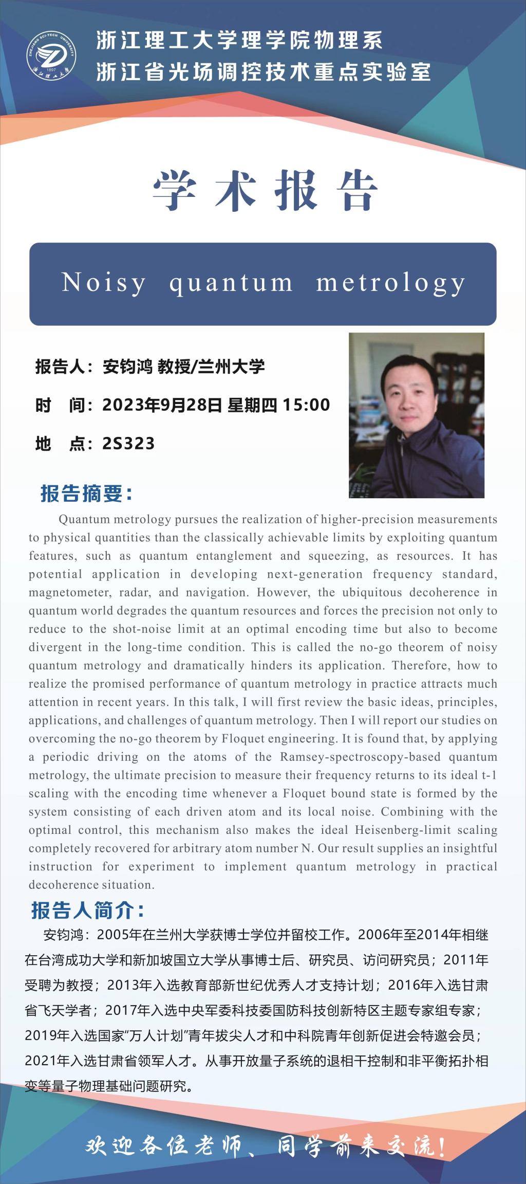 报告人:安钧鸿 教授/兰州大学