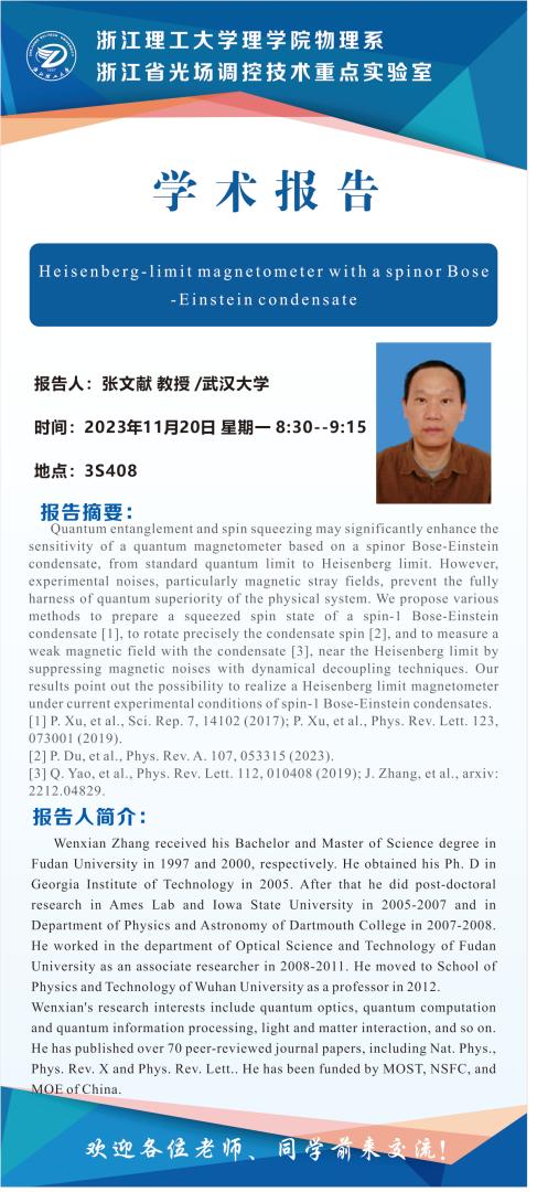 上一条:学术报告:非厄米拓扑现象:从SSH模型谈起 下一条:学术报告:Real eigenvalues are determined by the recursion of eigenstates