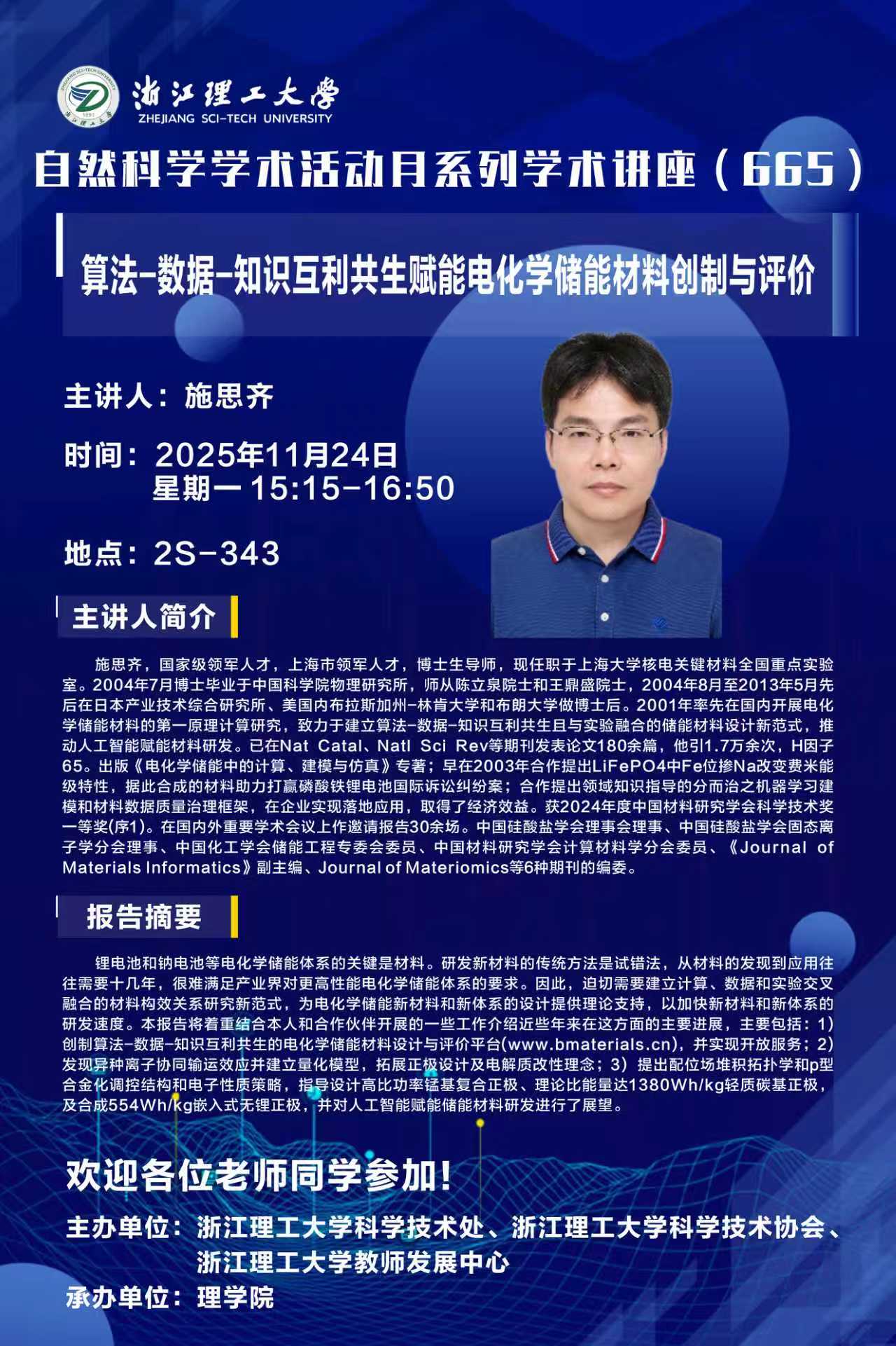 学术报告:算法—数据—知识互利共生赋能电化学储能材料创制与评价