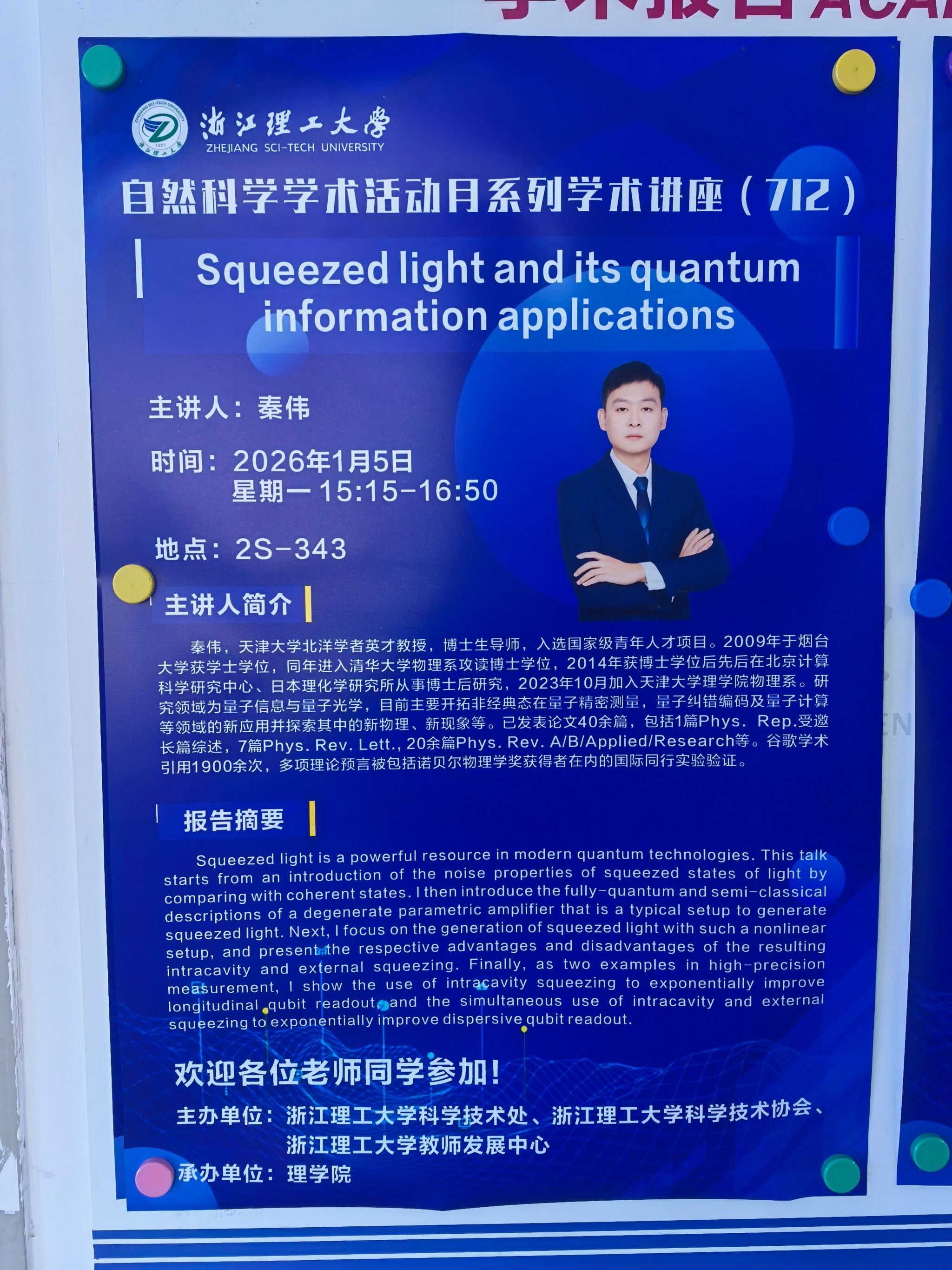 学术报告:Squeezed light and its quantum information applications