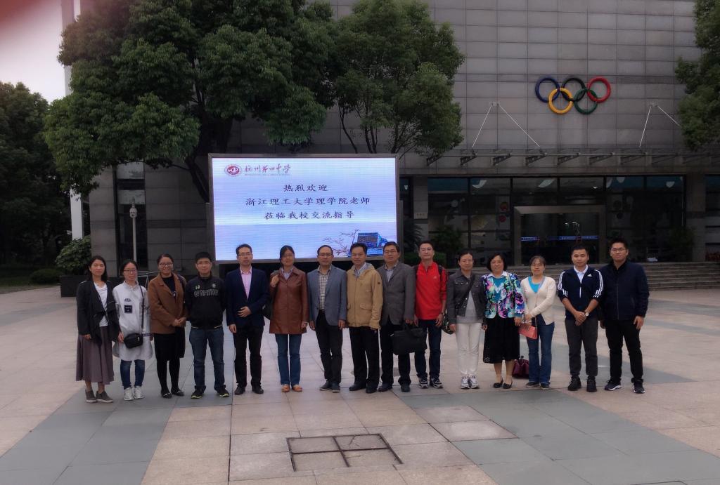 杭州第四中学的前身一养正书塾创建于1899年,是杭州知府林启同期创办的[求是书院、浙江蚕学馆、养正书塾]三所学校之一,是浙江省国人最早创办的中等学校。1996年经浙江省教委评估,被认定为省一级重点中学。同样,浙江理工大学的前身—浙江蚕学馆也是林启创办,二校颇有渊源。而且,本次交流活动也作为杭四中的一次正式教研活动,四中来了10位老师。