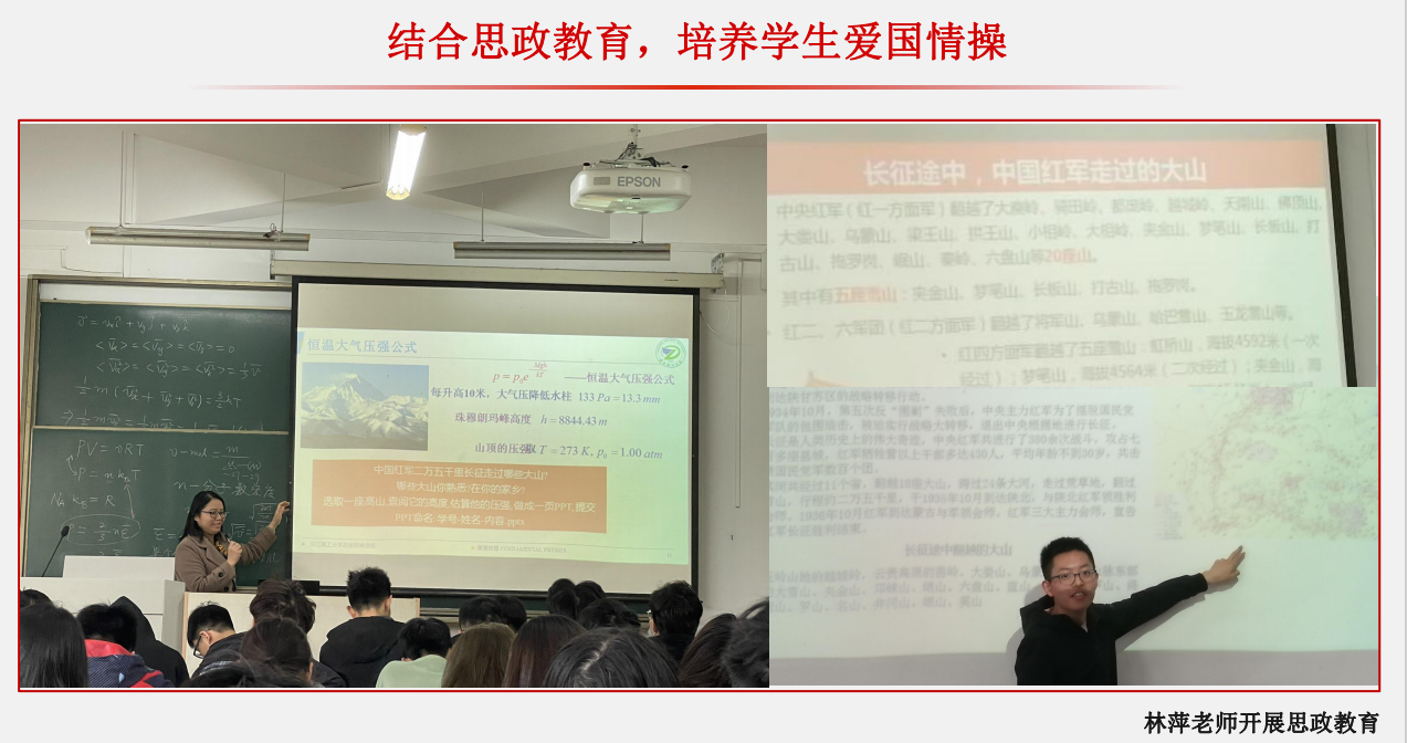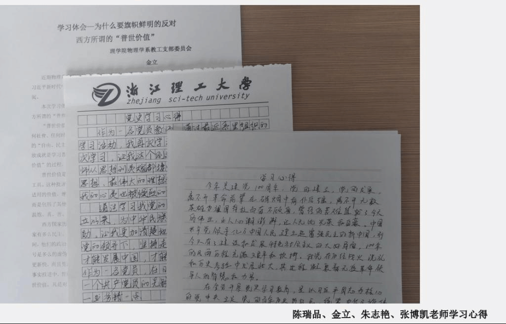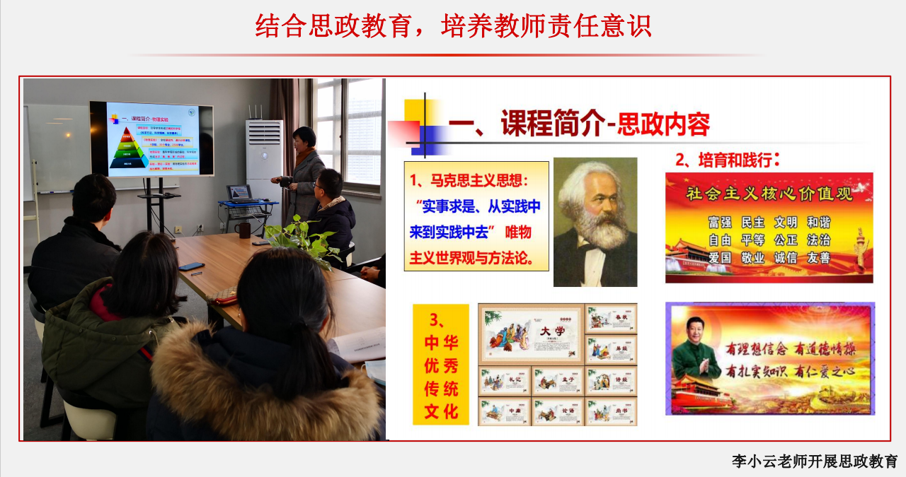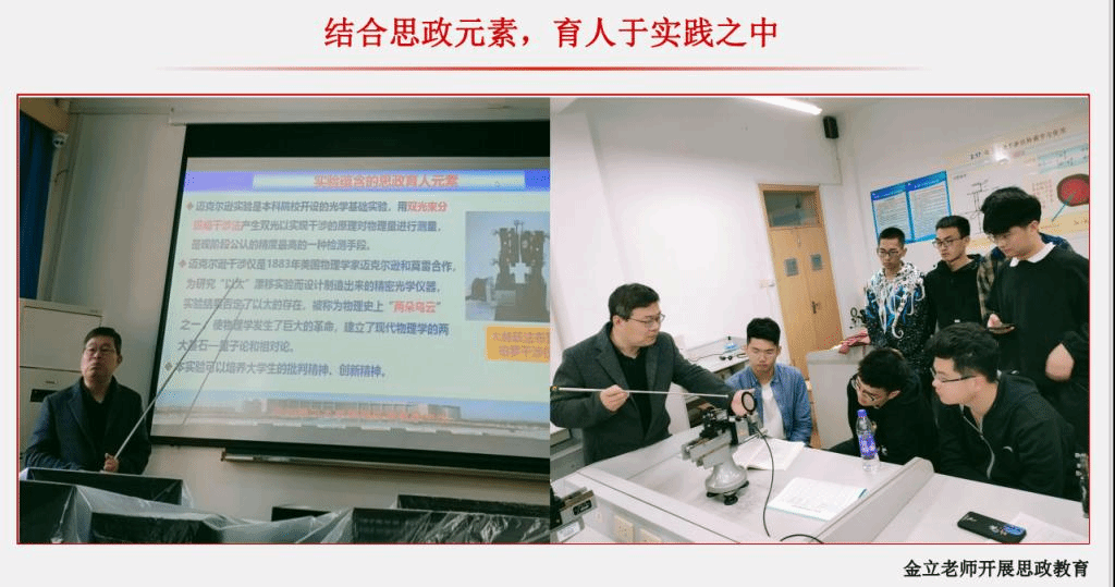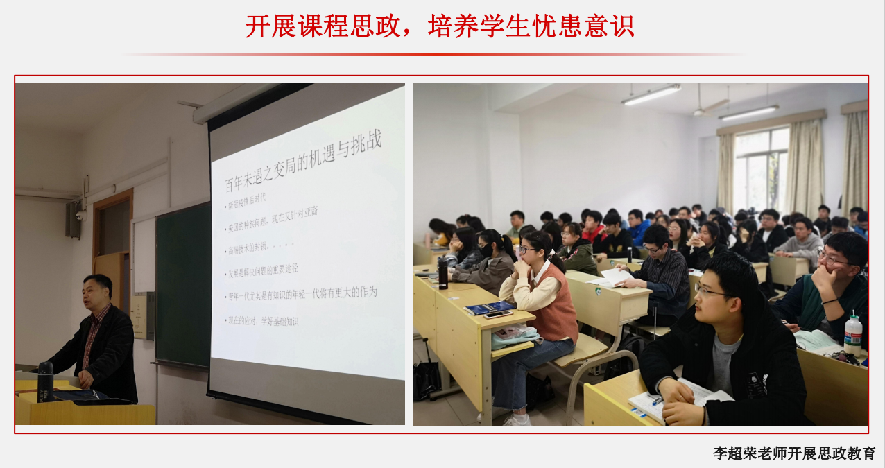 2) 爱国爱党课程思政教育:物理系教师开展爱国爱党及相关内容的思政教育,在自己讲授的课程中融入爱国爱党思政教育。